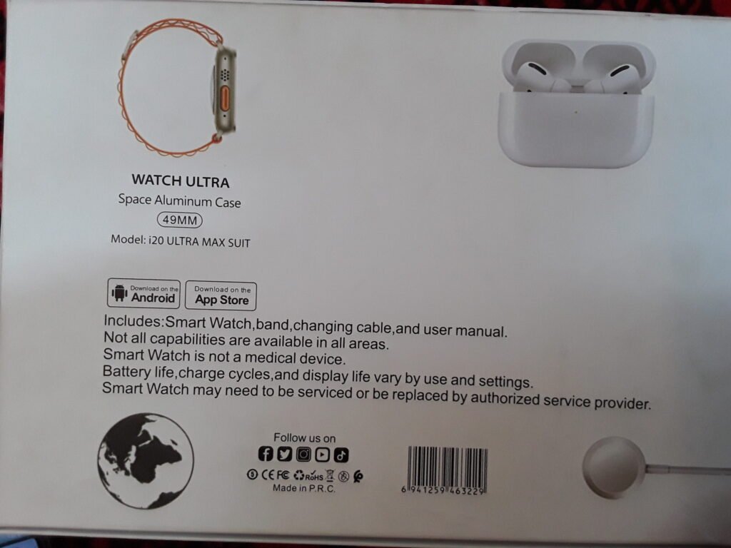 HiWatch Ultra, Watch ultra, I series 20, ultra max suit, Big 3.2 Infinite display, 10 in 1 set, with Earphones.